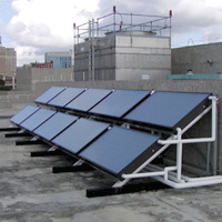 A typical solar water heating system is able to meet about one-third of a household's hot water needs - saving pounds, 55 pounds, on the basis of the 80 annual water heating costs, a three-bedroom semi-detached house.
