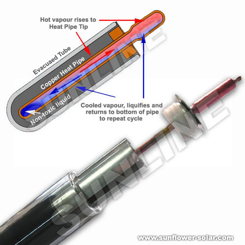 Weißt du, wie ein Wärmerohr für Solarkollektor funktioniert? Hier möchten wir eine kurze introudction für Sie wie folgt vornehmen: Sonnenlicht durch den Glasröhren durch die schwarze Beschichtung absorbiert wird.