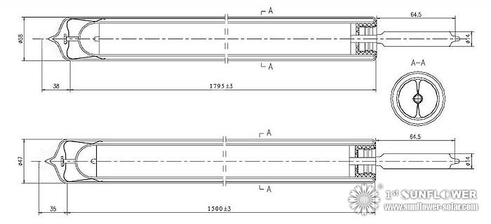 Häufig benutzen Hitzerohre ein Ölerfilz- oder Kapillaresystem, um den Fluss der Flüssigkeit zu unterstützen, aber für die Hitzerohre, die in den Solarkollektor der Sonnenblume wird kein benutzt werden, solches System angefordert, da die Innenoberfläche des Kupfers extrem glatt ist und erlaubt leistungsfähigen Fluss der Flüssigkeit zurück zu der Unterseite. Auch Sonnenblumesolarhitzerohre sind nicht horizontal angebracht. Hitzerohre können entworfen werden, um Hitze horizontal zu bringen, aber die Kosten sind viel höher. Das Hitzerohr, das in den Solarkollektor der Sonnenblume benutzt wird, enthält zwei kupferne Bestandteile, die Welle und den Kondensator. Vor Evakuierung wird der Kondensator zur Welle bronziert. Merken Sie dass der Kondensator hat einen viel größeren Durchmesser als die Welle, dieses, eine große Fläche zur Verfügung zu stellen ist, über der Wärmeübertragung auf die Überschrift auftreten kann. Das Kupfer, das benutzt wird, ist sauerstofffreies Kupfer und so stellt ausgezeichnete Lebensdauer und Leistung sicher. Jedes Hitzerohr wird auf Wärmeübertragungleistung geprüft und ausgesetzt Temperaturen 250oC (482oF) vor Sein anerkannt für Gebrauch. Aus diesem Grund sind die kupfernen Hitzerohre verhältnismäßig weich. Hitzerohre, die sehr steif sind, sind nicht solcher zwingenden Qualitätsprüfung ausgesetzt worden und können einen Lufteinschluß in der Oberseite im Laufe der Zeit bilden und Wärmeübertragungleistung so groß verringert.