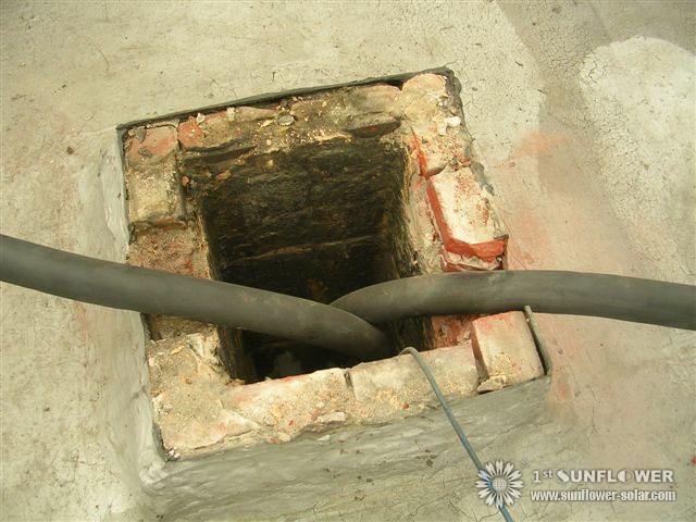 " 붙여 최근에 끝난 태양 DHW 체계 I의 몇몇 사진은 (전후에) 이다. 그것은 16 단위 아파트 건물의 지붕에 있다. 하수구 체계 돌아온다.