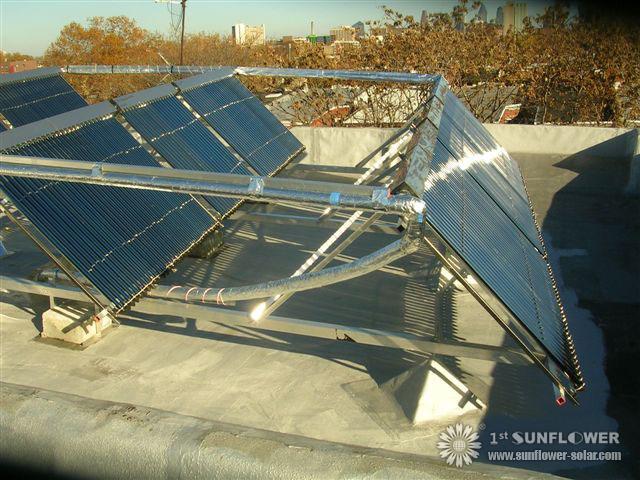 3의 3개의 줄이 있다 해바라기 태양 진공관 태양열 수집기 (6개 x 30의 관 수집가 그리고 3개 x 20의 관 수집가).